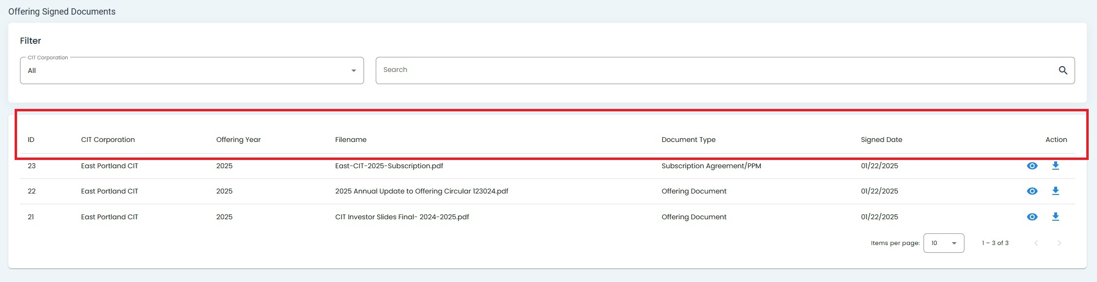Offering Signed Documents Table: Columns Explained#